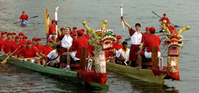 across the Pearl River on dragon boats during the 15th Asian Games Doha