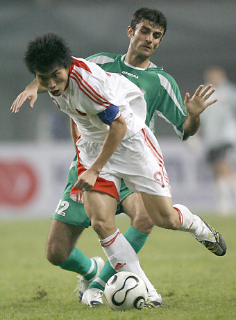 Midfielder Zheng Zhi tries to control the ball. [Xinhua]