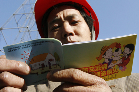 Program" at a construction site in Beijing on the eve of World AIDS Day November