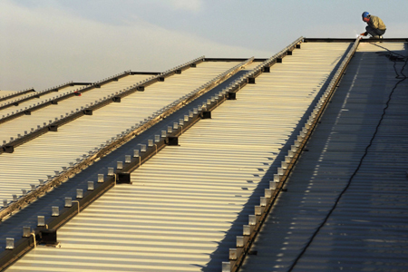 A labourer works on the construction site of the Olympic Stadium, where wrestling matches will be held during the Beijing 2008 Olympic Games, in Beijing December 17, 2006. Picture taken December 17, 2006. [Reuters]