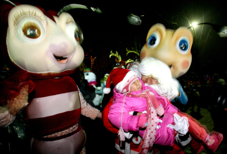 Santa Claus give a big hug for a child in Beijing Happy Vally Carnie December 20,2006.Beijing Happy Vally Carnie is going to hold Christmas holiday gala to hail the traditional western holiday this Sunday.[newsphoto] |