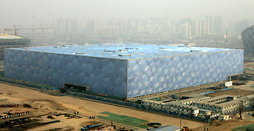 An general view of the Water Cube when last cushion was sealed - newsphoto
