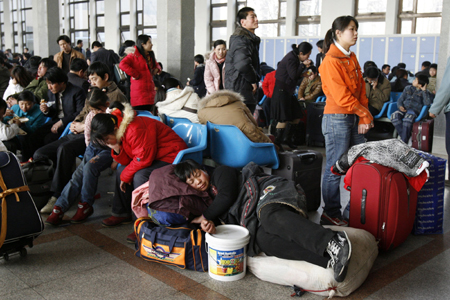 Passengers wait for their train at Beijing Railway Station February 4,
