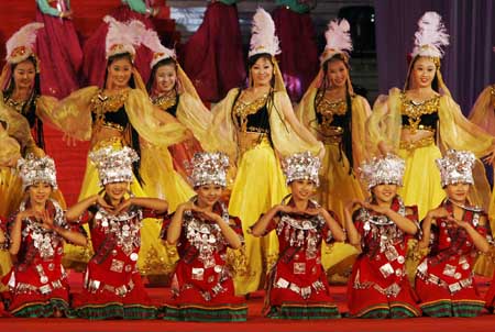 Artistes perform during the Beijing 2008 Olympic torch relay route announcement and the unveiling of the Olympic Torch design ceremony in Beijing April 26, 2007. [Reuters]