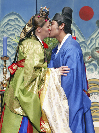 Halmi from the U.S. during their Korean traditional wedding ceremony at a hotel