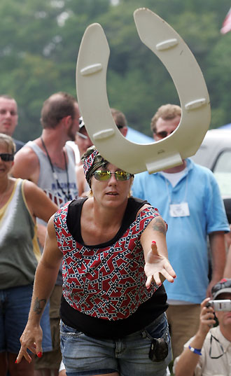 | Sharon Thompson of Soperton participates in the redneck horse shoe
