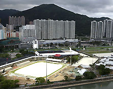A cameraman is working at the Shunyi Olympic Water Park construction,where will be given out for the Beijing 2008 Olympic Games and the Paralympic Games events of boat-racing,canoeing,swimming marathon and the boat-racing.The park will be the largest new competition venue for Games,spanning 3000 meters from the north to the south and 900 meters from east to the west with a total area of 1.62 sq km.[chinadaily.com.cn]