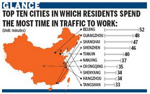 Beijingers have the longest commutes of any city dwellers in China, spending an average of one hour to and from work, according to a study released on Saturday.