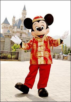Mickey Mouse in front of Sleeping Beauty Castle at the Hong Kong Disneyland Park, July 2005. The city's troubled Disney theme park has been stung by yet more complaints when a staff union accused management of setting unfair pay scales and overworking crew. [AFP]