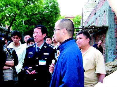 Wei parks outside the office building of the Beijing News, May 10, 2006.