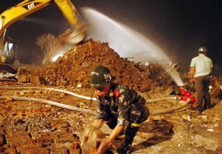 firefighters clear the site on June 17, 2006, after a Friday blast occured
