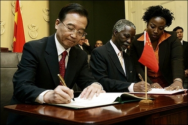 Chinese Premier Wen Jiabao(L) and South African president Thabo