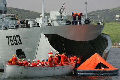 The People’s Liberation Army Forces Hong Kong (PLA) and various government departments take part in a maritime training exercise in Hong Kong July 12, 2006. The exercise is part of effort to intensify the PLA's ability to deal with the maritime emergency. [Newsphoto]