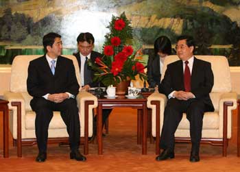 During his stay in Beijing, Abe met or held talks with Chinese President Hu