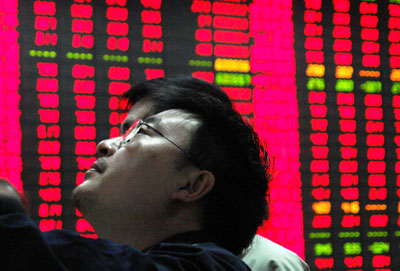 A stock investor checks the share index changes at a securities trading office in Zhengzhou, central China's Henan Province October 24, 2006. The benchmark Shanghai Composite Index surged 2.6 percent to 1,805.18, its highest close since September 21, when it ended at 1,807.01. [newsphoto]