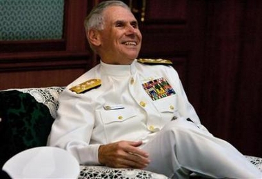 The chief of US forces in the Pacific, Admiral William J. Fallon smiles in this May 12, 2006 file photo. Fallon called for closer military ties with China and for the two powers to shed 'Cold War' thinking on Tuesday. [Reuters]