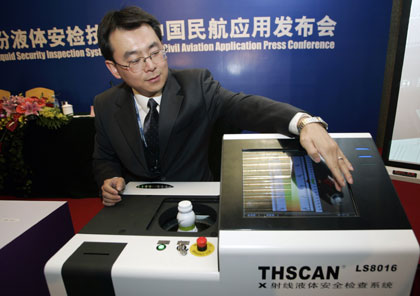 machine to spot liquid explosives during a news conference in Beijing