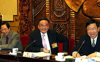 Wu Bangguo (C), chairman of the Standing Committee of the National
