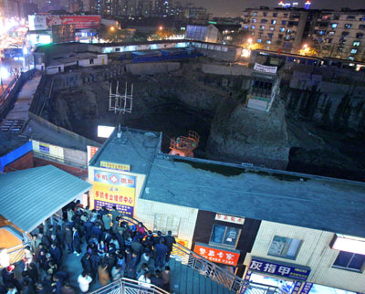 10-meter-deep construction pit in Chongqing March 22, 2007.