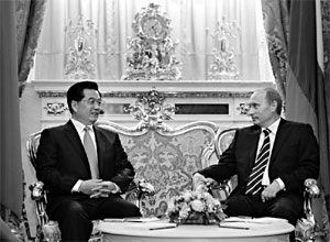 The two sides will also join hands to crack down on illegal immigration. The document also outlined the two countries' concerted efforts and stances on some major international issues. On the stand-off over Iran's nuclear issue, "China and Russia stress that the Iranian nuclear problem should be solved exclusively through peaceful means and negotiations," it said. The two countries "also urge Iran to take all necessary and constructive steps to carry out the appropriate resolutions of the United Nations Security Council and the IAEA," said the declaration. "(We) believe that Iran ... has the right to explore peaceful nuclear energy while adhering to all its obligations under the Non-Proliferation Treaty," it added. Hu arrived here earlier yesterday for a three-day state visit, during which he will meet other Russian leaders and attend activities marking the Year of China. In a written statement issued upon his arrival at the airport, Hu said last year saw "important progress made in the development of Sino-Russian relations". The principles set forth in the Sino-Russian Good-Neighborly Treaty of Friendship and Cooperation have been further implemented. Taking advantage of the Year of Russia in China last year, the two countries strived to promote the strategic partnership of cooperation. Hu said bilateral ties have developed rapidly with enhanced mutual political trust, pragmatic cooperation, active cultural and educational exchanges and the strengthening of strategic coordination in dealing with international affairs. "I believe the current visit will strengthen Sino-Russian relations and give new impetus to the expansion of pragmatic cooperation." Hu and Putin will today attend the opening ceremony of a Chinese national exhibition. Xinhua - Agencies