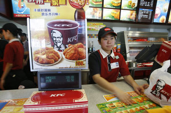 April 2, 2007. A KFC worker attends to a customer at a KFC outlet in
