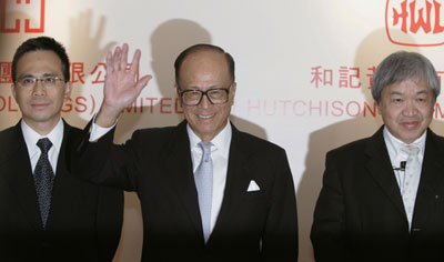 (L-R) Cheung Kong Holdings Deputy-Chairman and Managing Director Victor Li, Hutchison Whampoa Limited and Cheung Kong Holdings Chairman Li Ka-shing and Hutchison Whampoa Group Managing Director Canning Fok attend a news conference following an annual general meeting in Hong Kong May 17, 2007. [Reuters]