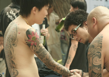 Tattoos making a mark in ChinaBy Sun Yuqing (chinadaily.com.cn)Updated: 2007-06-16 20:16 More and more Chinese are beginning to have or accept tattoos, according to some tattoo fans said during the Tattoo Show Convention China 2007 in Beijing. A photographer said that policemen in certain areas of east China's Jiangsu Province would question young men with tattoos years ago since they were usually regarded as punks looking for trouble.