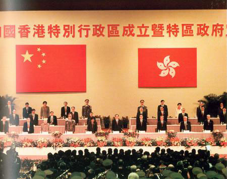 Leaders attend a ceremony marking the official functioning of the HKSAR government on July 1, 1997.