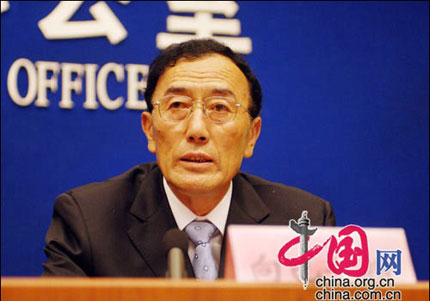 Qiangba Puncog, chairman of the regional government of Tibet Autonomous Region, speaks at a press conference in Beijing June 20, 2007. [china.org.cn]