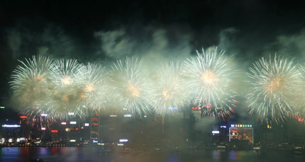 Fireworks in Hong Kong light up the sky during celebrations marking the 10th anniversary of the former colony's return to China July 1, 2007. [Reuters]