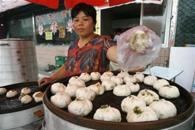 A vendor sells steaming buns at a street corner in Beijing July 12, 2007. [Reuters]
