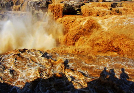 Water roars down the Hukou Waterfall of the Yellow River in Northwest China's Shaanxi Province on October 20, 2008. The waterfalls, located in the Shaan-Jin Grand Canyon, have resumed after consecutive rainfall around the upriver regions. [CFP]