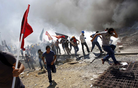 Firefithers search for survivors among the debris after an explosion-triggered building collapse in Suzhou city, East China's Jiangsu province on June 11, 2013. [Photo/Xinhua] |