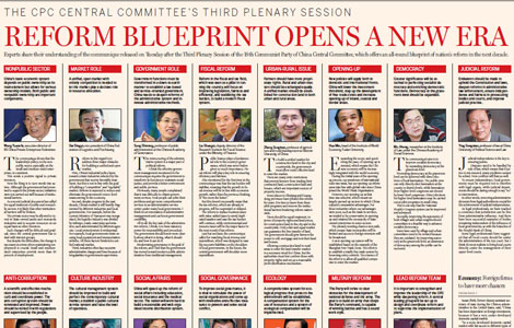 Experts share their understanding of the communique released on Tuesday after the Third Plenary Session of the 18th Communist Party of China Central Committee, which offers an all-round blueprint of nation's reform in the next decade.