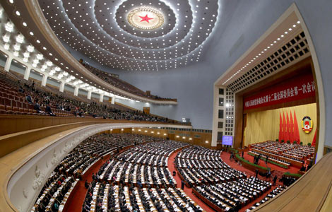 The third plenary meeting of the first session of the 12th National People's Congress (NPC) is held at the Great Hall of the People in Beijing, capital of China, March 10, 2013.