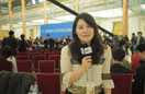 A reporter wears a hairstyle with the Chinese character of "Wen", the surname of Premier Wen Jiabao, to win the attention of the premier for a question during a news conference.