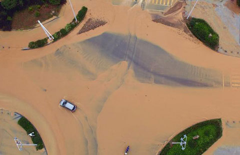 Rising water left traffic in Xi’an in chaos, as seen in this photo taken on July 24, 2016.