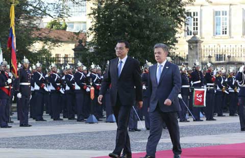 Premier Li Keqiang arrived in Bogota, capital of Colombia, to start his official visit to the country on May 21.