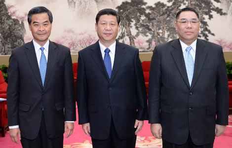 Chinese president Xi Jinping on Monday met CY Leung and Chui Sai On, chief executives of Hong Kong and Macao special administrative regions(SAR), fully endorsing their work and that of their respective governments.