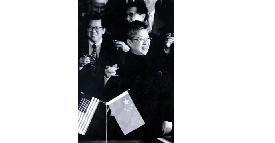 Foreign Trade Minister Wu Yi toasts after signing the Sino-US Intellectual Property Rights Agreement in Beijing, March 11, 1995. [Photo by Xu Jingxing/China Daily]