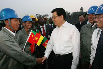 Hu visits Chinese workers in Cameroon