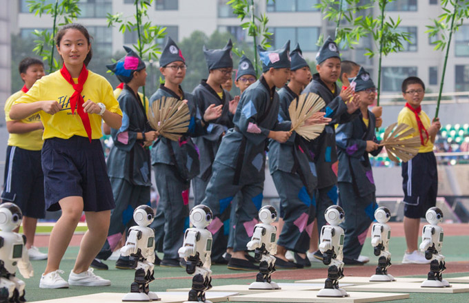 Students-made robots perform at sports meeting in Hangzhou