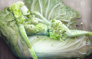 Chinese artist Ju Duoqi produces a sculpture made entirely of Chinese cabbage in Beijing in this photo released on June 2, 2011.Ju calls her project "The Fantasies of Chinese Cabbage."