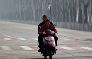 A man administers an intravenous drip while riding on the back seat of a motorcycle in Lixin county, East China’s Anhui province, March 28, 2011.