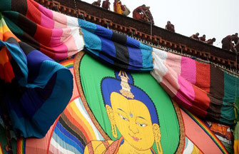 Buddhists attend Thangka worship activity in Tibet