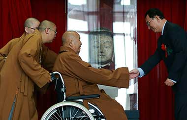 Hundreds cheer abbot's efforts to return Buddha head
