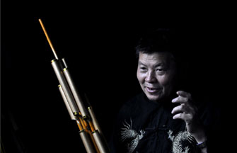 Inheritor of reed-pipe wind instrument 'Lusheng' in Guizhou