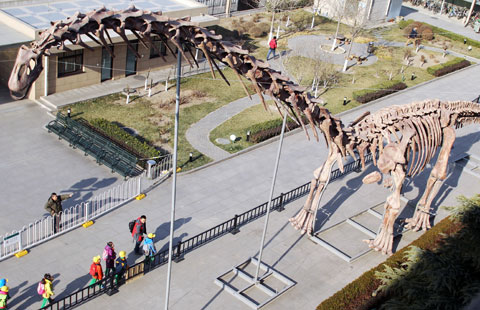 World's biggest dinosaur skeleton shown in Beijing