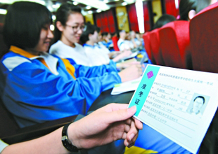 ▲昨天下午,27中高三年級的學(xué)生們拿到了今年的高考準考證,準考證背面注明考試時間表和考場注意事項??荚嚱Y(jié)束后,考生不得把試題冊、答題卡或草稿紙等帶出,離場后不準在考場附近逗留。