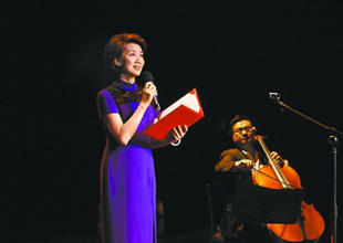 一襲紫色長裙,微紅的卷發(fā),前天晚上,當(dāng)李修平出現(xiàn)在鼓樓西劇場時,現(xiàn)場觀眾將最熱烈、最持久的掌聲送給了她?!薄 ±钚奁剿f的同伴,是張泉靈、陳偉鴻、季小軍、春妮、歐陽夏丹等二十多位知名主播,他們都參加了這次公益朗誦會。